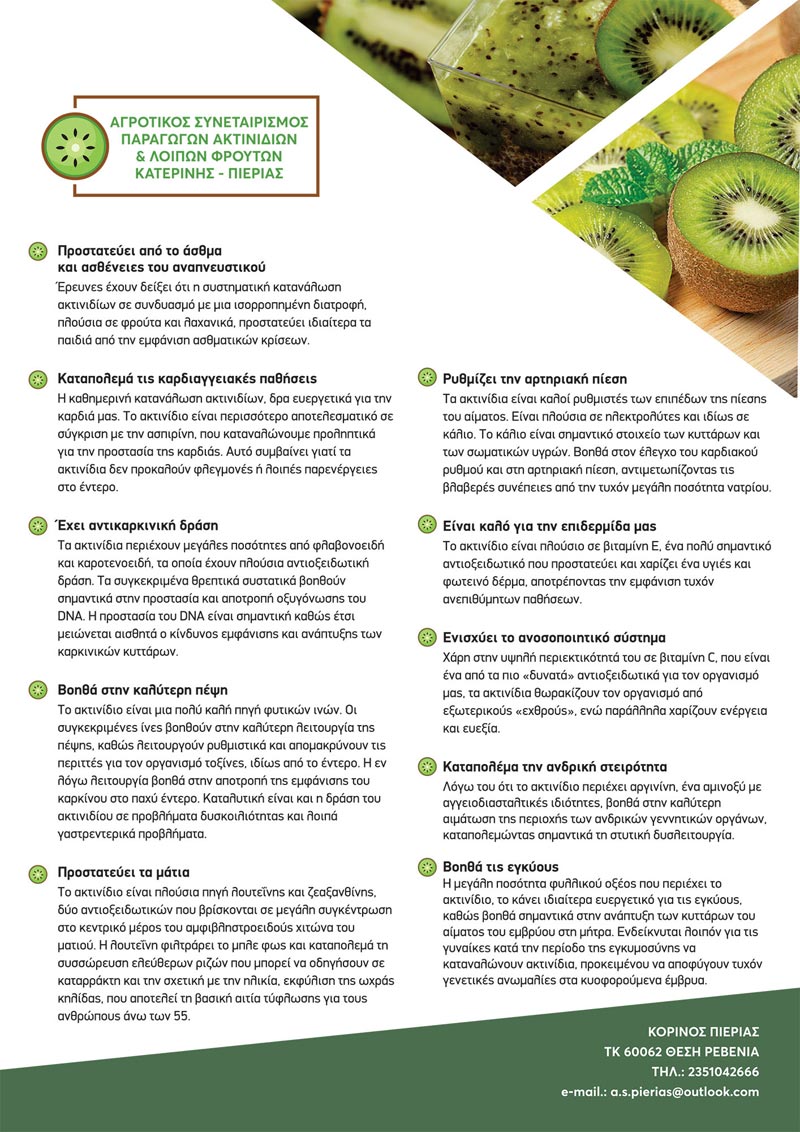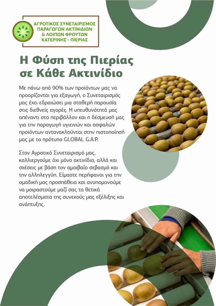 Στον κόσμο του Αγροτικού Συνεταιρισμού Παραγωγών Ακτινιδίων Κατερίνης – Πιερίας, η φύση, η ποιότητα και η αρμονία συναντώνται για να δημιουργήσουν τα καλύτερα ακτινίδια για εσάς!